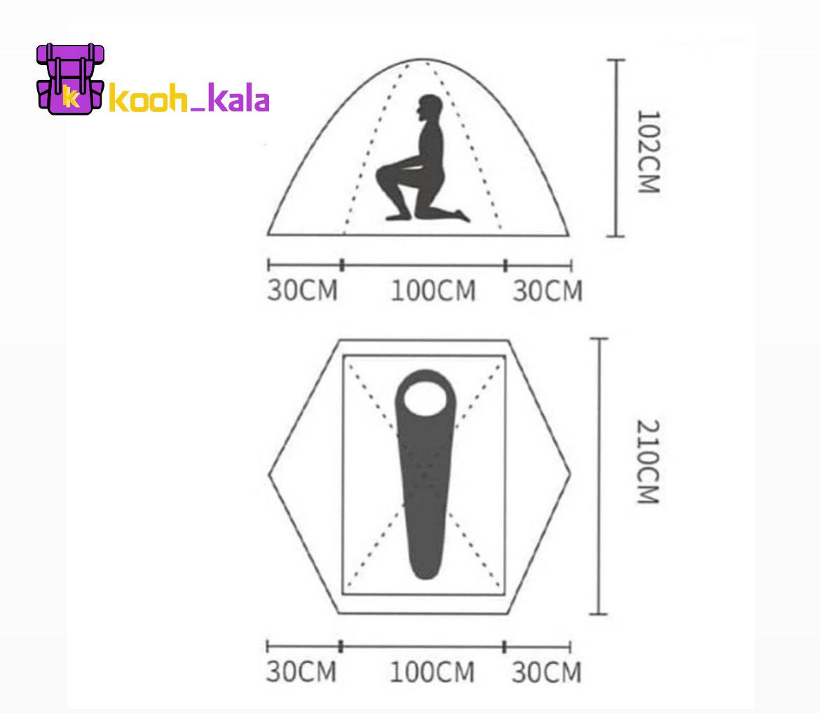 • این چادر دارای ۲ تیرک و استراکچر آن به صورت گنبدی است.